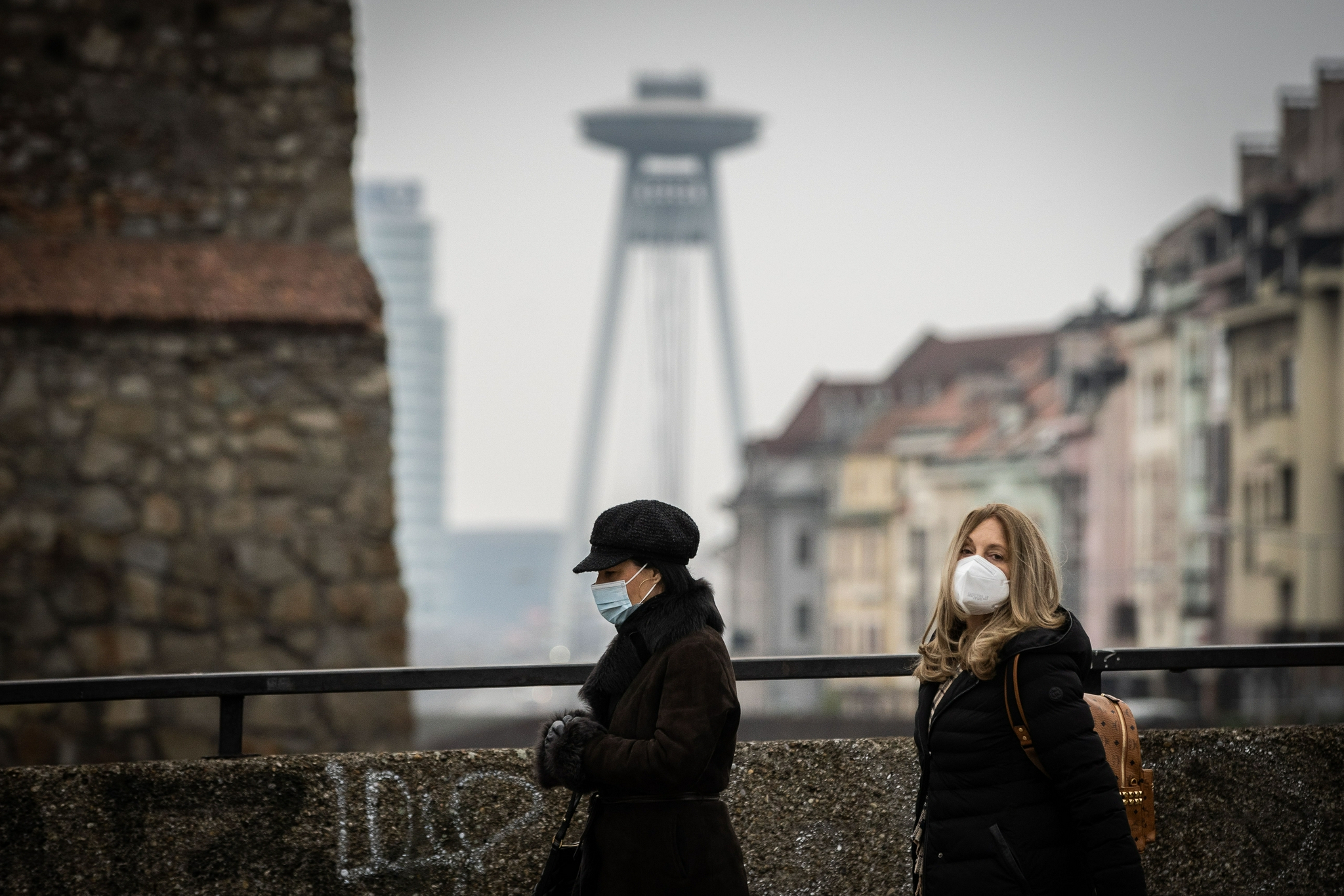2021年11月25日在斯洛伐克首都布拉迪斯拉發街頭拍攝的戴口罩的行人。新華社/歐新