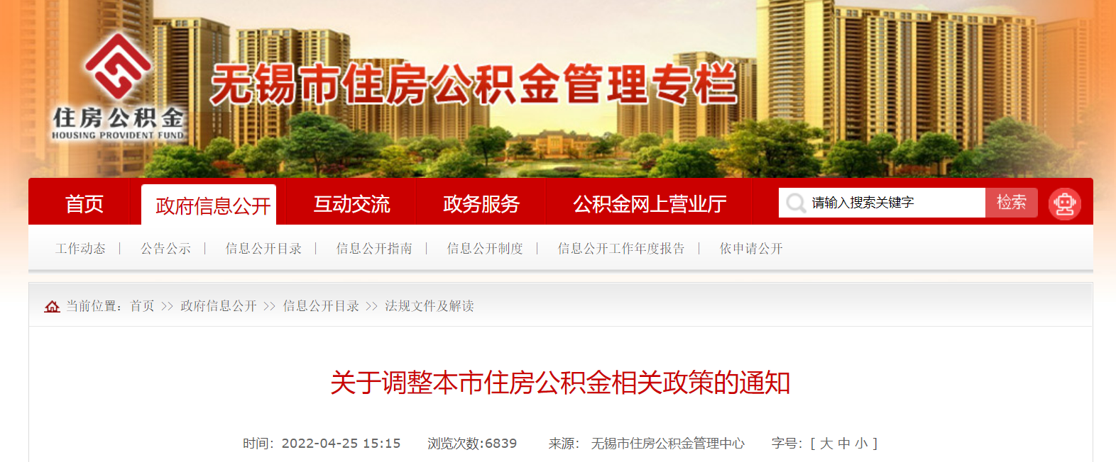 無錫市住房公積金管理中心網站4月25日發佈通知,調整該市住房公積金相關政策: