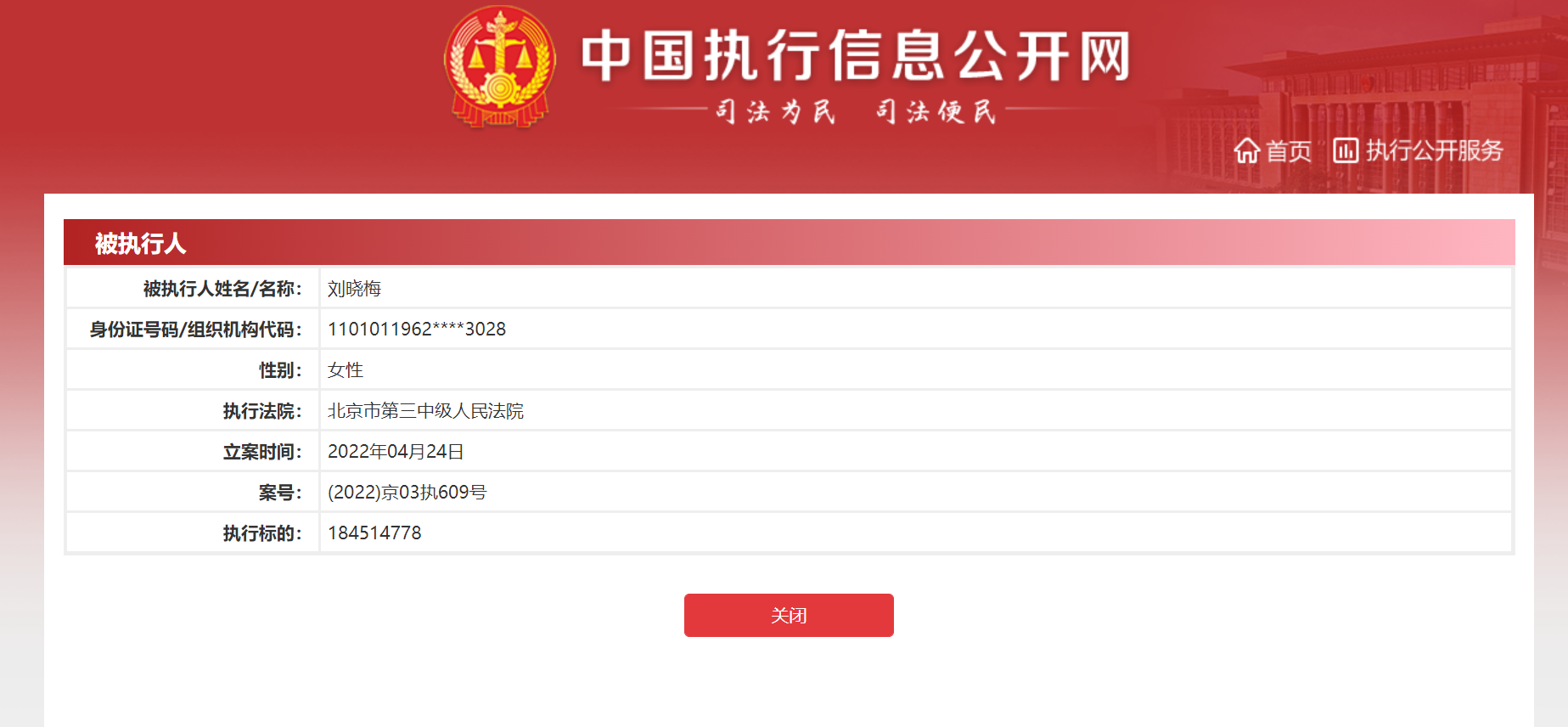據中國執行信息公開網,一份案號為(2022)京03執609號的案件顯示,華誼兄弟(天津)投資有限公司被列為被執行人,立案時間為2022年04月24日,執行標的達184514778元,執行法院為北京市第三中級人民法院。同案號下,還可查詢到被執行人有王忠軍、王忠磊、王曉蓉、劉曉梅等人。