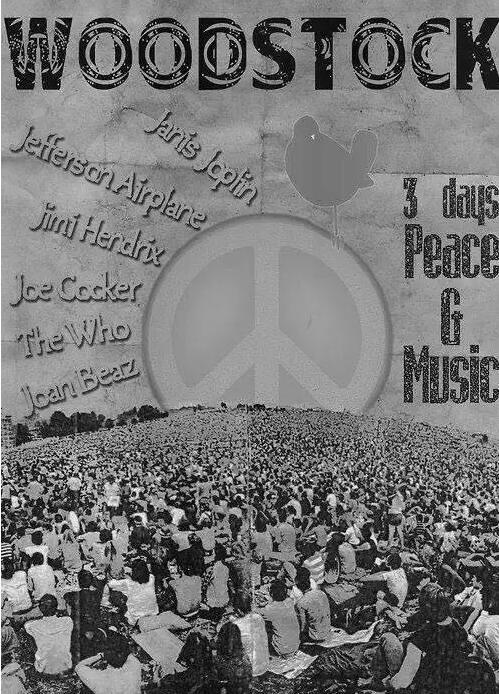 1969年8月的伍德斯托克音樂節堪稱人們表達和平訴求的高潮,大約50萬反戰人士到場參加,眾多重量級大腕比如亨德里克斯(Jimi Hendrix)、詹尼斯·喬普林(Janis Joplin)等等都參加了這場音樂節,而和平標誌也隨着嬉皮士音樂的發展得到了廣泛傳播。