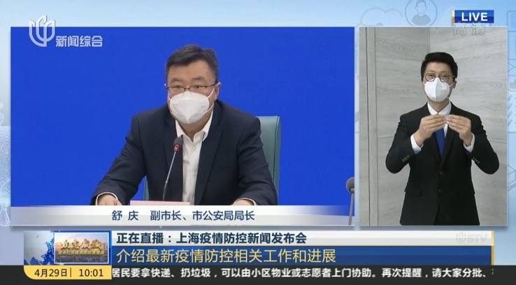 4月29日,上海市人民政府新聞辦公室舉行疫情防控工作新聞發佈會,邀請副市長、市公安局局長舒慶,市衞生健康委副主任趙丹丹,市公安局法制總隊總隊長範宏飛介紹情況。