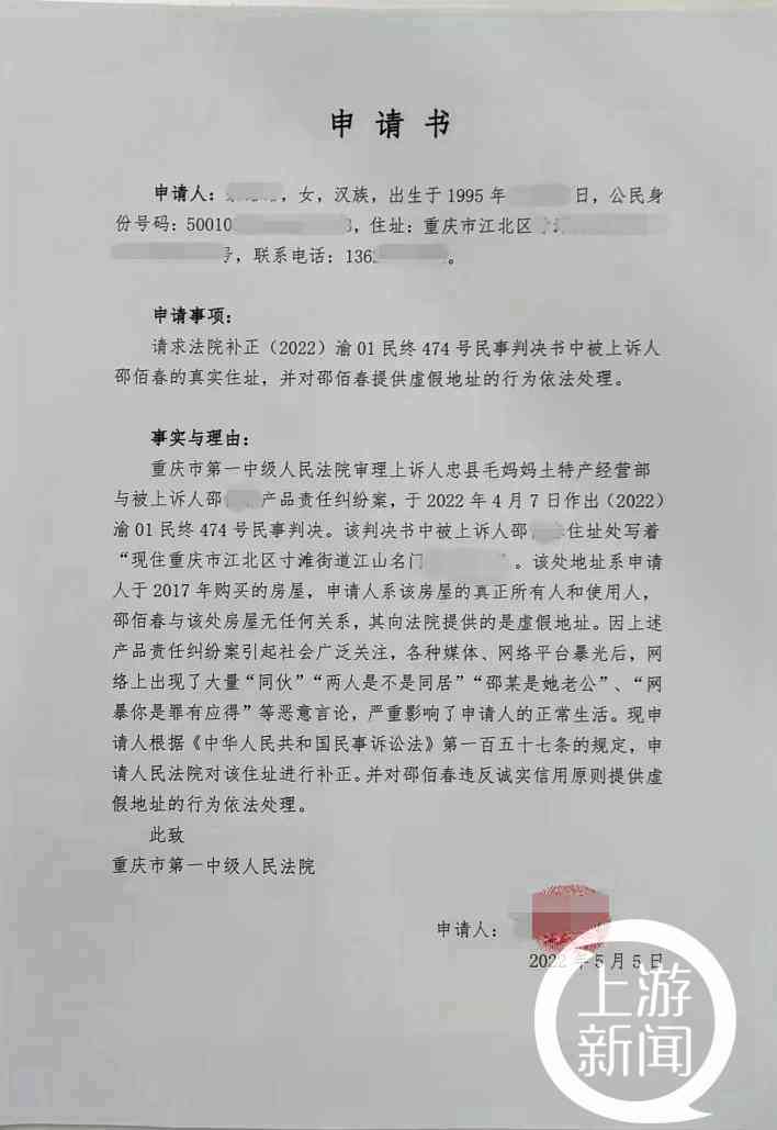 地址真實業主向法院提交的起訴申請書 圖片來源:業主供圖