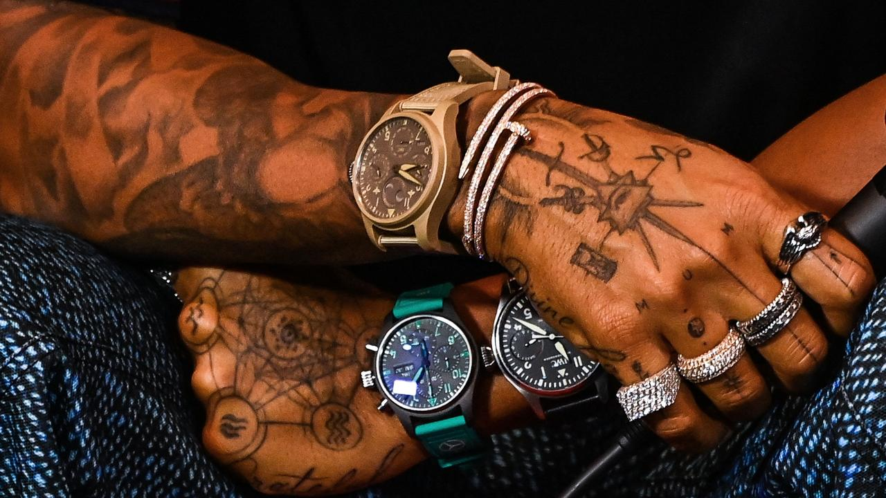 (觀察者網訊)當地時間5月6日,在2022年F1邁阿密大獎賽前的新聞發佈會上,英國車手、七冠王劉易斯·漢密爾頓(Lewis Hamilton)戴着3塊手錶、8支戒指、4條項鍊和2只耳環等首飾現身,以表達對國際汽聯(FIA)珠寶禁令的不滿。