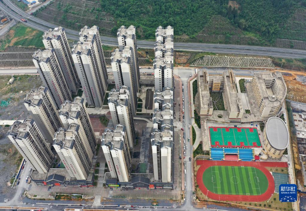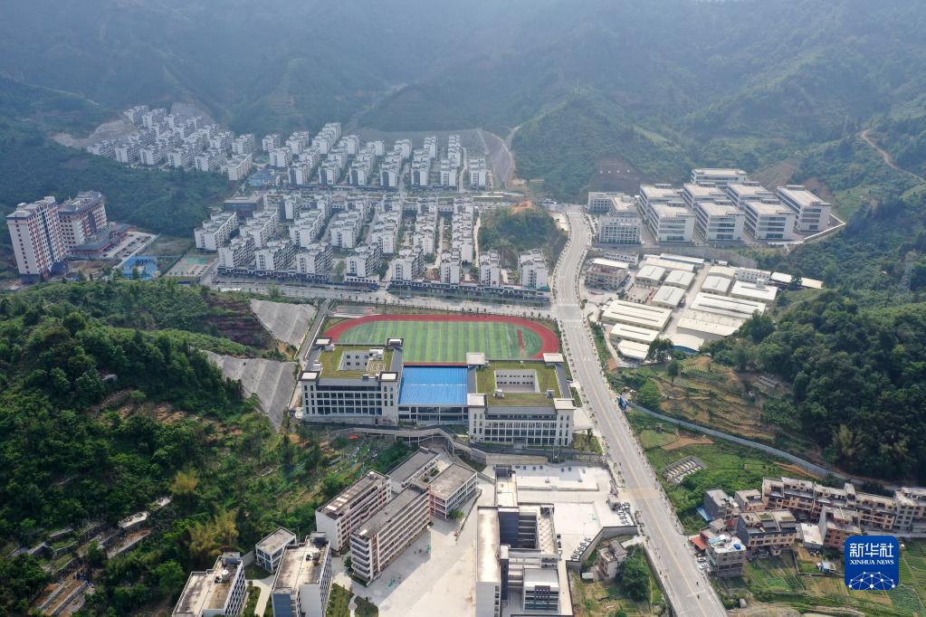 這是廣西鳳山縣扶貧移民集中安置區——鳳城鎮思源社區及其配套建築設施(5月7日攝,無人機照片)。