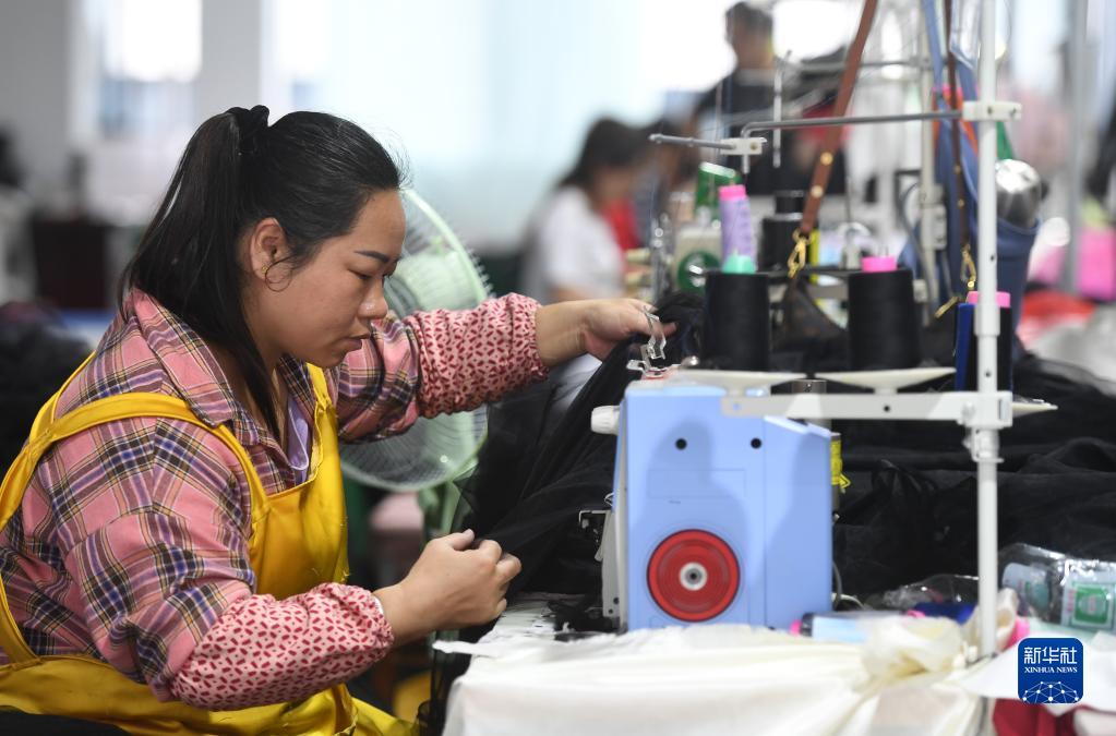 在廣西鳳山縣雙創產業園,企業員工在生產作業中(5月7日攝)。
