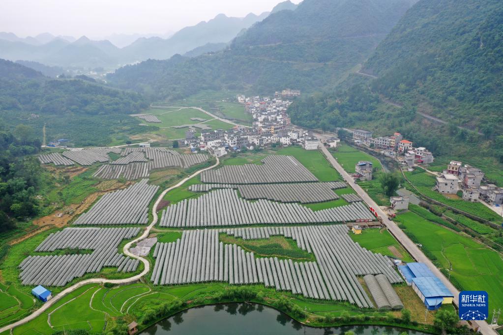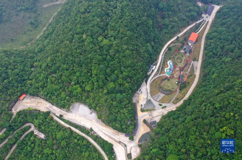 這是廣西鳳山縣喬音鄉久隆村巴臘猴山鄉村旅遊區(5月7日攝,無人機照片)。