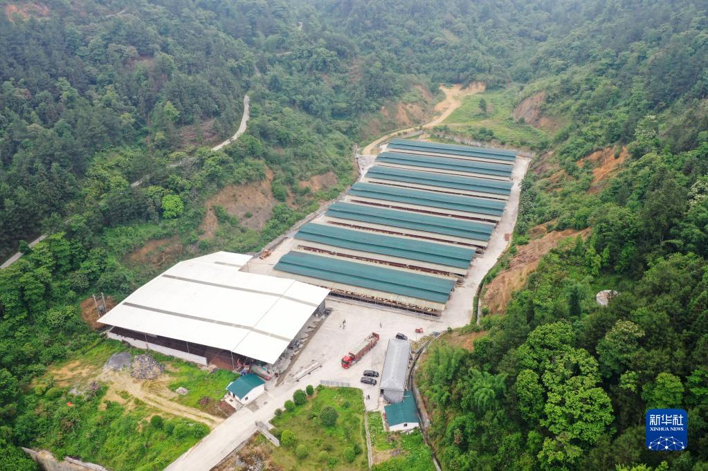 這是廣西東蘭縣武篆鎮東里村澳寒羊養殖基地(5月6日攝,無人機照片)。