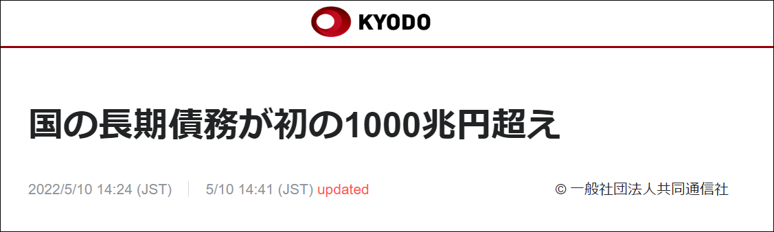 (觀察者網訊)據日本共同社報道,日本財務省5月10日公佈,截至2021年底,該國未來需償還的“長期債務餘額”達到1017.1萬億日元(約合52.3萬億元人民幣),連續18年創下歷史新高,並首次突破1000萬億日元大關。
