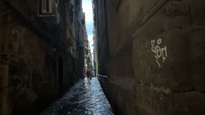 根據直播視頻顯示,當時,艾琳娜撐着一把雨傘,探索那不勒斯的街道。“這看起來很酷,”艾琳娜將手機鏡頭轉向一條黑暗幽深的狹窄小巷,其間有一名穿着雨衣,拿着包的行人。“這條小道太長了,真瘋狂。”