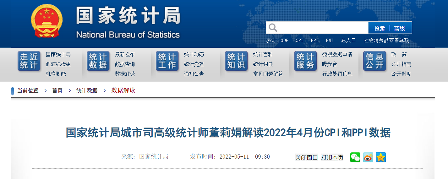 ——國家統計局城市司高級統計師董莉娟解讀2022年4月份CPI和PPI數據