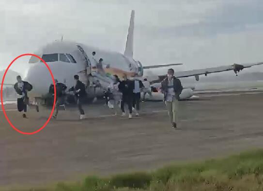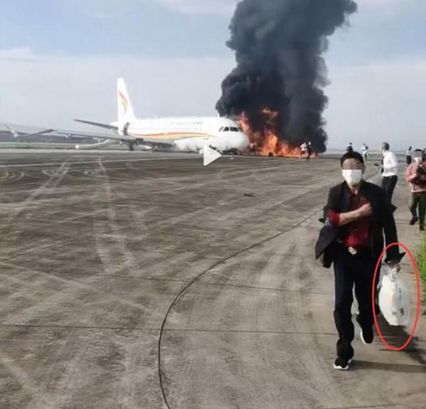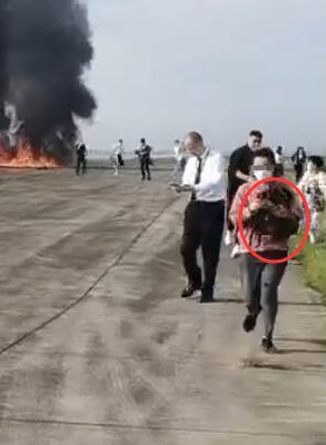 在現場視頻中可以看到不少人抱着包、提着袋子甚至拎着行李箱從飛機上撤離,包括飛機尚未起火時