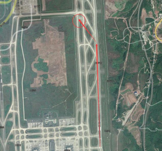 事故飛機路徑示意圖,圓圈位置為飛機停下的位置
