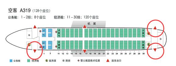 紅色三角為緊急疏散通道,紅圈部分為本次事故中確定釋放滑梯進行疏散的艙門