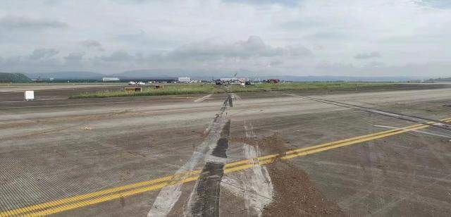 事故飛機在跑道上留下的痕跡,圖片來源:社交媒體