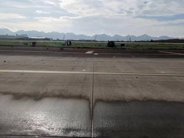散落在機坪上的發動機殘骸,圖片來源:社交媒體