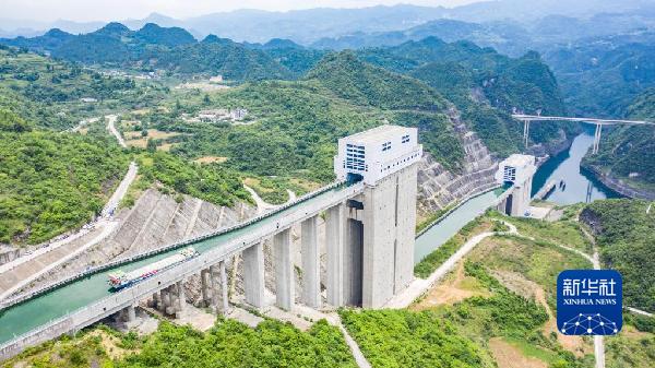 2021年6月投入試運行的構皮灘水電站配套的通航工程,被視為貴州通江達海的關鍵。構皮灘通航水頭高差達199米,採用三級垂直升船機運行,船隻通過烏江構皮灘水電站都要搭乘“水上電梯”,呈現出“水在空中懸,船在天上行”的奇景。