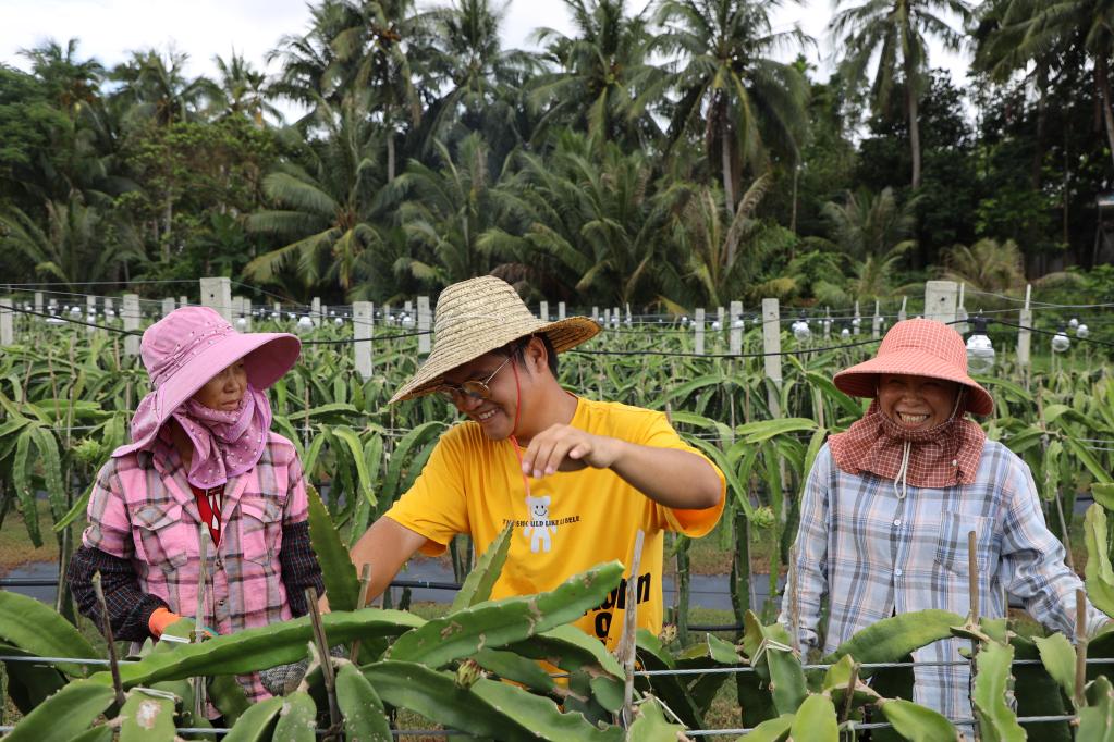 萬寧市長豐鎮七甲村村民在火龍果基地修剪枝條。新華社記者房寬攝