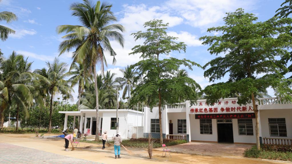 萬寧市長豐鎮七甲村村民在清掃村莊衞生。新華社記者郭良川攝