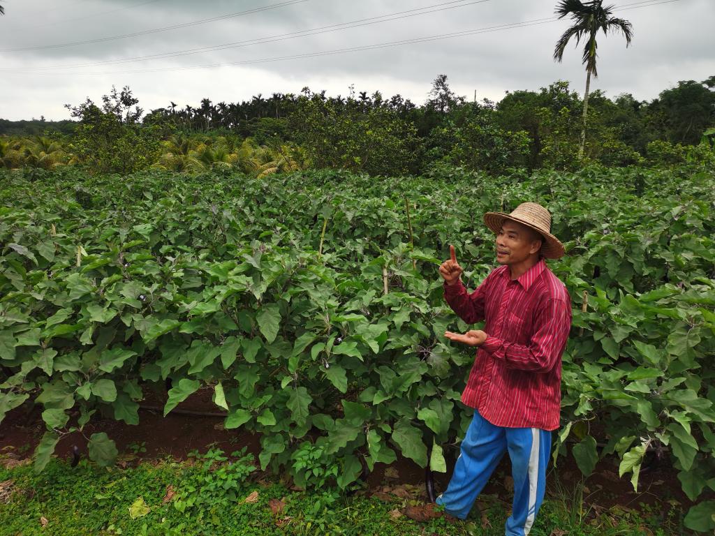 海口市瓊山區道崇村村民王統奮在介紹他種植茄子的秘訣。新華社記者趙葉蘋攝