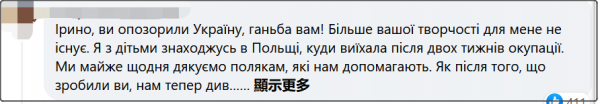 “簡直是給烏克蘭丟臉……我和我的孩子都在波蘭,我們感謝每天幫助我們的波蘭人,你們現在這樣,我們以後怎麼面對波蘭人?你羞辱了我們和烏克蘭。”