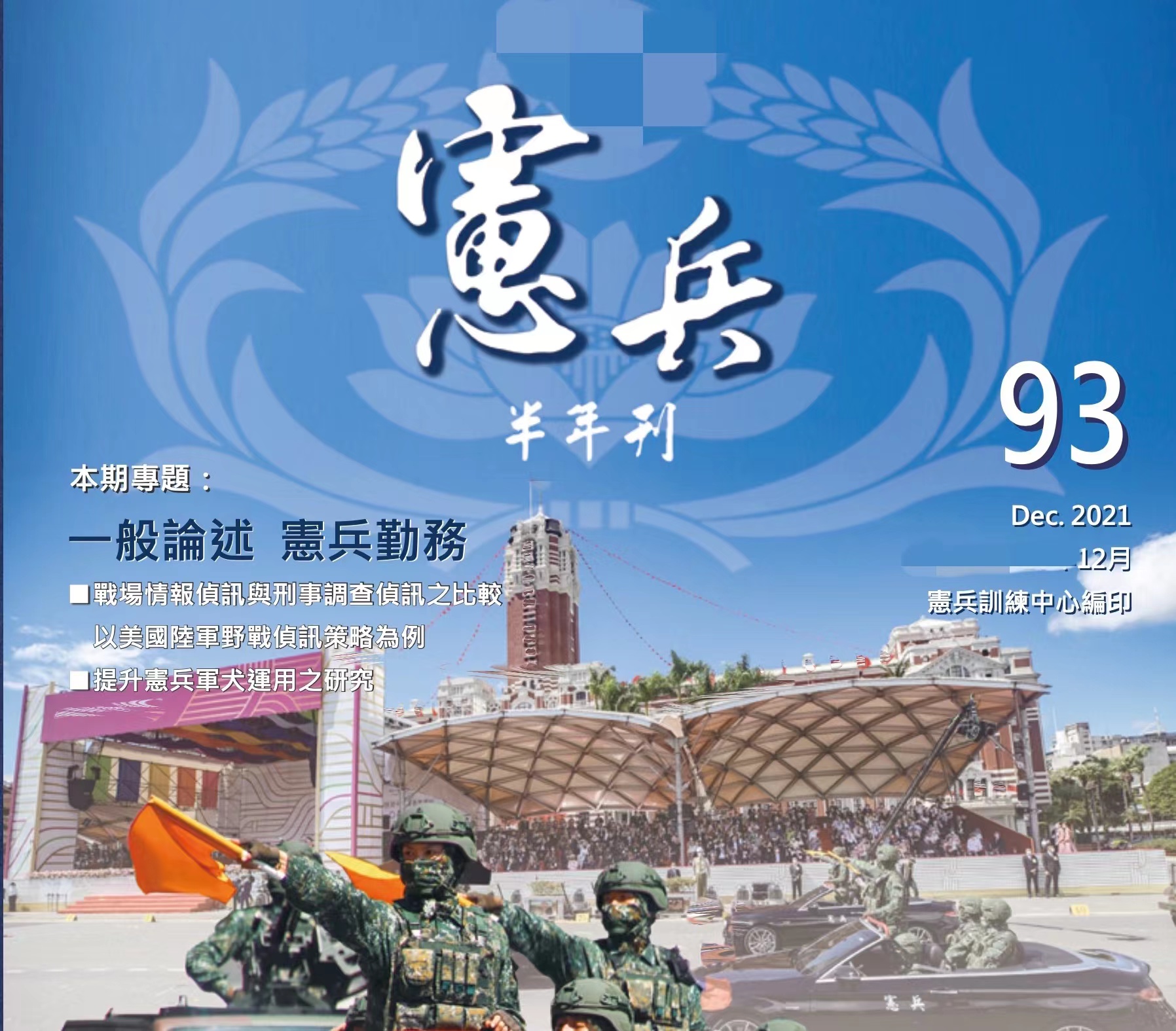台灣《憲兵半年刊》封面的“憲”字誤寫為“慮”字。圖自台灣“憲兵指揮部”官網