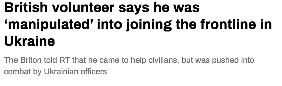 他稱自己和其他不明真相的志願者都感覺是被“操控”(manipulated)着捲入了戰爭,“不僅是被‘外籍軍團’騙了,我還感覺自己在英國時就被西方媒體騙了”。