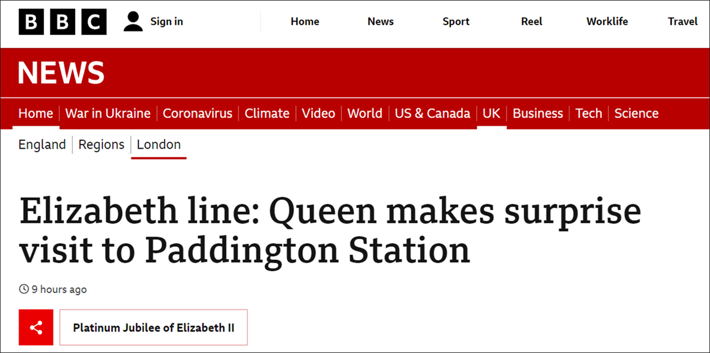 英國廣播公司(BBC):伊麗莎白線:女王出人意料造訪帕丁頓車站