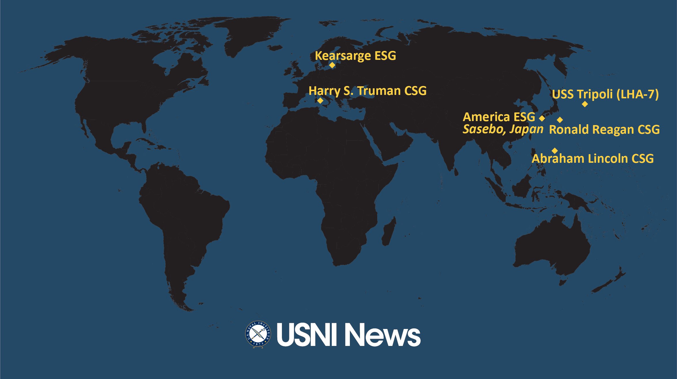 美軍航母與兩棲攻擊艦活動位置圖,圖自美國海軍協會網站