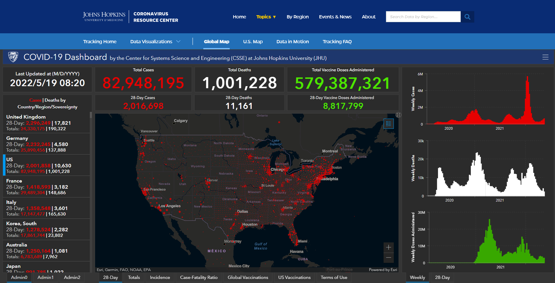 早些時候,美國約翰斯·霍普金斯大學統計數據出現錯誤,顯示截至北京時間5月19日5時20分,美國新冠肺炎累計感染病例達到83545966例,累計死亡病例達到1007743例。
