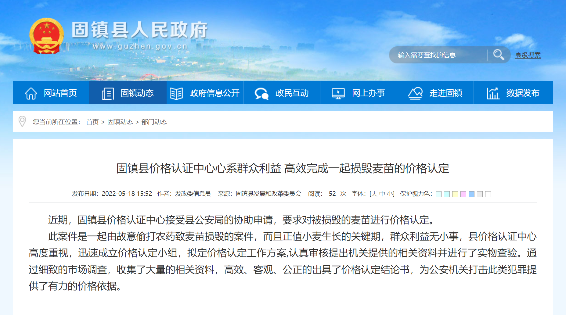 安徽固鎮縣人民政府網站5月18日消息,近期,固鎮縣價格認證中心接受縣公安局的協助申請,要求對被損毀的麥苗進行價格認定。