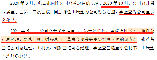 值得注意的是,2020年4月入職的李金登,直至同年10月新天地藥業董事會才正式同意聘任李金登為該公司董事、董事會秘書;2021年5月該公司董事會才審議通過《關於聘任公司總經理、副總經理、財務總監、董事會秘書等高級管理人員的議案》。