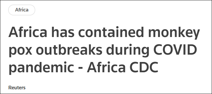 (觀察者網訊)據英國路透社19日報道,非洲最高公共衞生機構非洲疾病控制和預防中心表示,在新冠大流行期間,非洲暴發了幾次猴痘疫情,但都已得到控制。