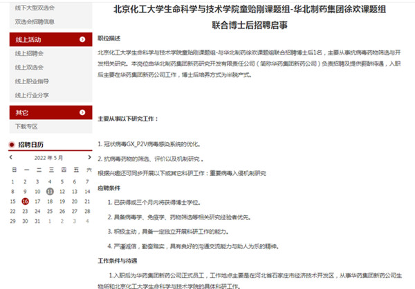 但是從產業角度看,千金藤素的開發卻變成了“半路失蹤”。“千金藤素概念股”企業中,華北製藥曾在2020年與童貽剛課題組聯合招聘博士後,目標是針對新冠病毒藥物的合作研發。但是北化公佈的專利中,並沒有出現華北製藥。