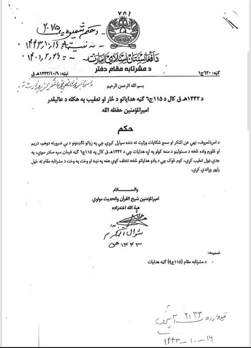 (觀察者網訊)據阿富汗黎明新聞 (TOLO news)報道,當地時間20日,阿富汗臨時政府最高領導人希巴圖拉·阿洪扎達(Hibatullah Akhundzada)發佈一項新法令,指示阿富汗塔利班成員避免沒有必要且奢侈的第二、第三或第四次婚姻,稱這既不必要又昂貴。