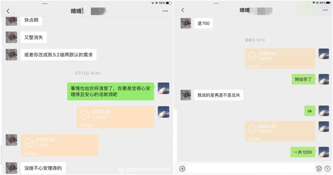 (觀察者網訊)22日,有槍手在西安電子科技大學貼吧曝光稱,該大學2名大四學生不僅找其有償代做畢業設計,還在做完後反手利用交易平台漏洞跟槍手要錢,這一爆料迅速引發網友關注。