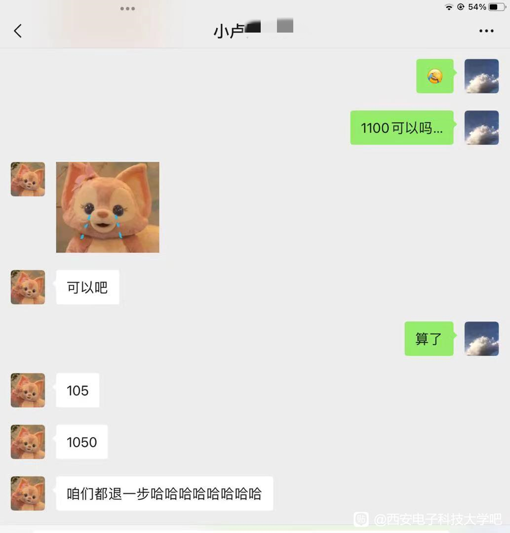 學生“小盧---”商討的價格是1050元