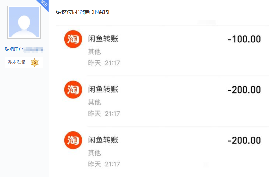 槍手給學生“晴晴---”轉賬1200元