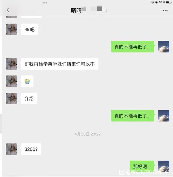 學生“晴晴---”跟槍手商討的費用是3200元