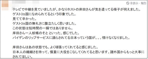 “岸田看起來像是被拜登輕視了啊……”