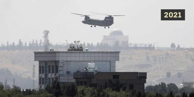 2021年8月15日清晨,美軍CH-47“支奴幹”雙旋翼直升機飛抵美國駐阿富汗大使館上空,撤離美方工作人員。