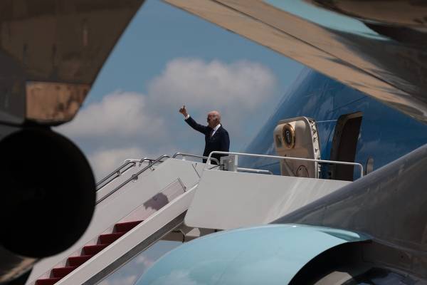5月19日,美國馬里蘭州,美國總統拜登登上“空軍一號”,準備開啓上任以來的首次亞洲之行。圖自澎湃影像