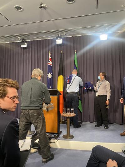 阿爾巴尼斯在召開就任總理後的首場新聞發佈會時,打破慣例,把身後的三面澳大利亞國旗去掉了兩面,換成澳大利亞土著旗和託雷斯海峽島民旗。