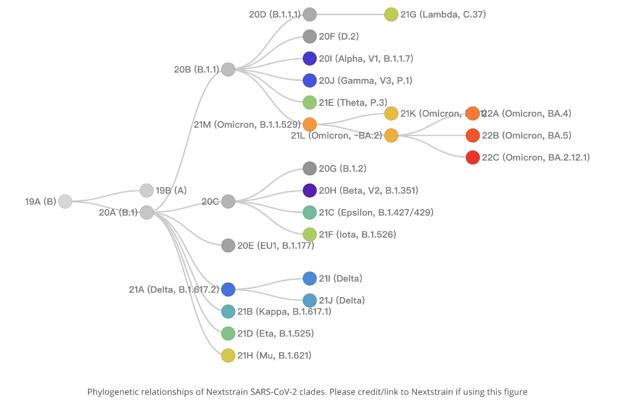 在德爾塔(Delta,B.1.617.2)全球流行株幾乎一統江山之時,它的遠親奧密克戎(Omicron,B.1.1.529)出現了大約45個突變,將奧密克戎與其祖先毒株分開。此前的貝塔(beta ,B.1.351)和伽馬(gamma,P.1)同樣也是從各自最近的祖先毒株中分離出來,同樣出現了很多突變。