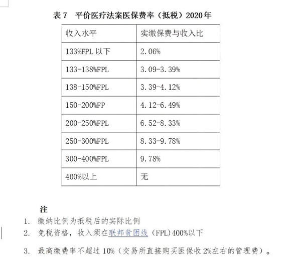 美國平價醫療法案(奧巴馬)醫保近似中國的居民醫保,有政府補貼(抵税),其繳納是按收入的2-10%(單位可繳納部分),不同收入者按規定享受財政補貼(抵税)。