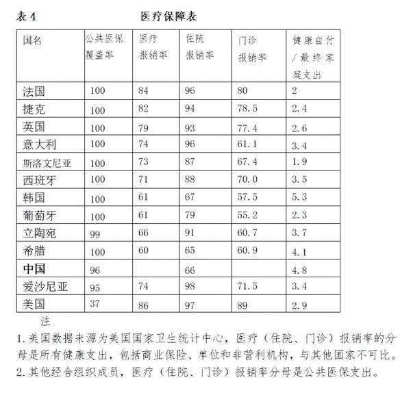 中國公共醫療保障的差距,主要有幾點,一是最高限額,中國是超過為自費,因此雖然有公共大病保險,但也會給部分家庭造成困難;中等發達國家多為超過限額,個人不再自付;二是居民醫保門診多數地區不報銷,中國正在籌劃,盼早日實施。