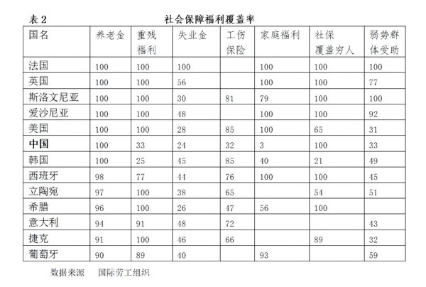 從法定社保費率看,中國為33.5%,中等發達國家多高於中國,如法國為51.15%、意大利為42.87%、西班牙為37.38%。