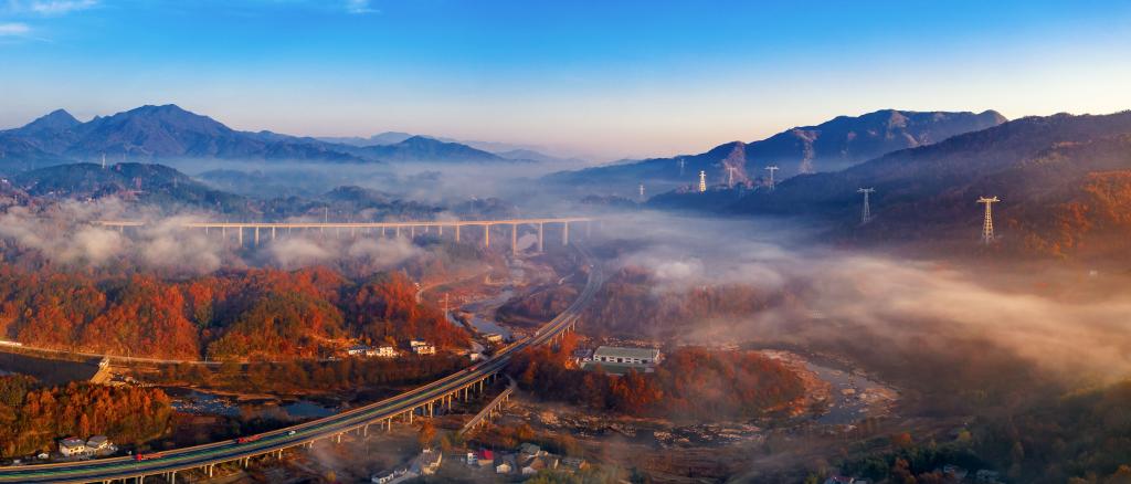 2021年11月20日,在金寨縣斑竹園鎮橋口遠眺大別山。新華社發(汪誠 攝)