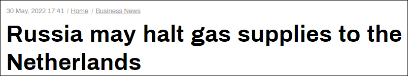 據“今日俄羅斯”5月30日報道,俄羅斯能源巨頭、俄羅斯天然氣工業股份公司(簡稱“俄氣”)30日宣佈,將從5月31日起暫停向荷蘭貿易商GasTerra供應天然氣,因為4月份的交貨沒有收到付款,而且對方拒絕用盧布支付。