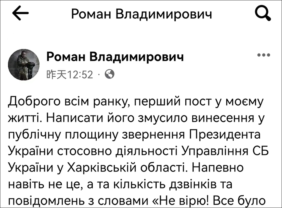 然而,剛被解職的烏克蘭哈爾科夫州安全局局長羅曼·杜丁30日卻在臉書上爆料,稱烏軍的這一行動是在為澤連斯基上演一場“表演”。他還稱,因為這次行動導致4人死亡,3人受傷。