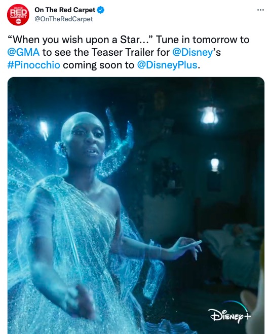 當地時間5月30日,ABC(美國廣播公司)旗下娛樂資訊媒體“OnTheRedCarpet”在推特放出了真人版《木偶奇遇記》預告節選,配文以動畫片經典配樂《當你向星星許願》的歌詞開頭,宣佈第一段完整預告將於當地時間5月31日登錄ABC旗下節目《早安美國》。